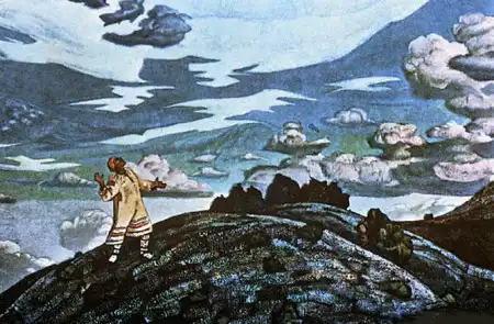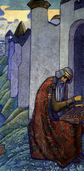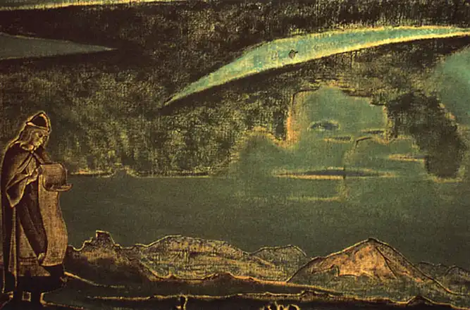 Рерих (Nicholas Roerich), Николай Константинович (1874-1947) – русский живописец, театральный художник, ученый, писатель, путешественник, общественный деятель и философ; человек-легенда, одна из самых ярких фигур русского символизма и модерна. Родился в Петербурге 27 сентября (9 октября) 1874 в семье нотариуса. В 1893 поступил в Петербургский университет, где занимался на юридическом факультете, и одновременно в Академию художеств, где работал в мастерской А.И.Куинджи. Учился также в студии Кормона в Париже (1900–1901). До революции жил преимущественно в Петербурге, много путешествовал. На рубеже веков написал цикл архитектурно-исторических пейзажей Пскова, Ростова Великого, Изборска и других старинных русских городов (1899–1904, Музей искусства народов Востока, Москва; другие собрания). Сцены минувшего предстают в его картинах в виде красочных символов-обобщений: Гонец (Восстал род на род), 1902; Город строят, 1902; Бой, 1906; история трактуется как цепь таинственных космических знаков (Небесный бой, 1912, Русский музей, Петербург; Короны, 1914, Музей русского искусства, Киев). Средоточием образов нередко становятся легендарные фигуры героев и святых (Пантелеймон-целитель, 1916, Третьяковская галерея, Москва; Три радости, 1916, Русский музей). Этапным для сценографии модерна явился театральный дизайн, феерически-красочный и в то же время «режиссерски» соучаствующий в ритмике спектакля (Пер Гюнт Г.Ибсена в московском Художественном театре, 1912; Весна священная И.Ф.Стравинского, – где Рёрих выступил и соавтором либретто, – для антрепризы С.П.Дягилева в Париже, 1913; Князь Игорь А.П.Бородина для той же антрепризы в Лондоне, 1914). Исполнил и целый ряд монументально-декоративных работ, однако наиболее значительные его произведения в этой области (росписи Святодуховской церкви в Талашкине под Смоленском, 1911–1914; панно Сеча при Керженце и Покорение Казани для Казанского вокзала в Москве, 1915–1916) не сохранились вообще, либо дошли до нас в виде фрагментов. Сперва не приняв революцию и выразив свой ужас перед ее вандализмом в символической драме Милосердие (1918), мастер, оказавшись за финской границей, с 1918 жил за рубежом. В 1920 переехал в США, основав там вместе с женой Е.И.Шапошниковой «Общество Агни-Йоги» для распространения учения «Живой Этики», призванного морально усовершенствовать человечество на базе древних религий, прежде всего буддизма, и современной теософии. В 1923 начинает из Сиккима свою Трансгималайскую экспедицию с целью исторического и топографического изучения Центральной Азии; экспедиция дважды пересекает последнюю, пройдя через труднодоступные районы Индии, Монголии и Тибета.