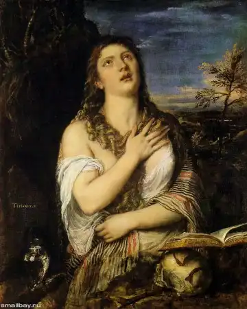 В 1550-е годы характер творчества Тициана меняется, нарастает драматическое начало в его религиозных композициях (“Мученичество святого Лаврентия”, 1555, церковь Джезуити, Венеция; “Положение во гроб”, 1559, Прадо). В то же время он вновь обращается к мифологической тематике, мотиву цветущей женской красоты (“Сизиф”, 1549-1550; “Даная”, 1554; “Венера и Адонис”, 1554, все - Прадо, Мадрид; “Персей и Андромеда”, 1556, Собрание Уоллеса, Лондон). К этим образам близка также горько рыдающая Мария Магдалина в одноименном полотне.