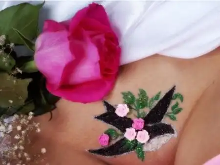 Для женщин с довольно тяжелой нижней половиной тела рекомендуются рисунки, сочетающие округлые и поперечные мотивы, сужающиеся книзу — цветок, сердце, бабочка, «галочка».