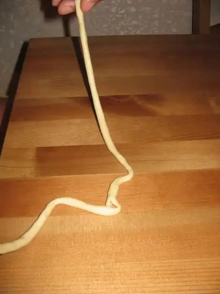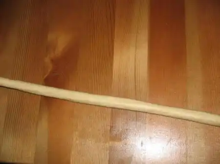 Каждую колбаску одной рукой катая, второй рукой вытягиваем её