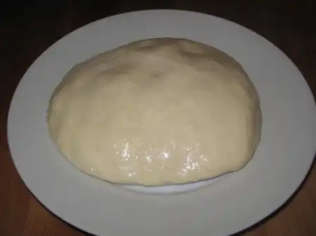 Берём наше "отдохнувшее" тесто. Сформируем его в виде толстой лепёшки (не важно, какой формы, хоть квадратом)