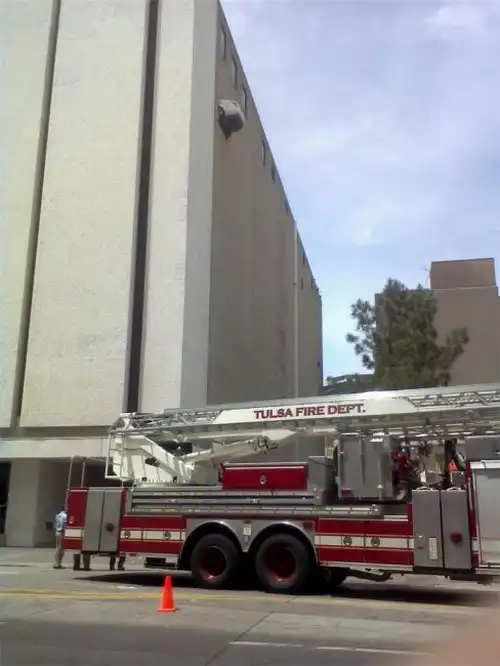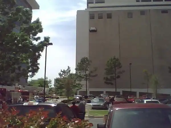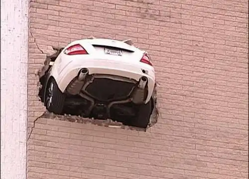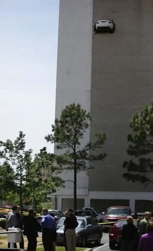 Разогнав машину, он пробил стену на автостоянке в городке Tulsa (Оклахома).