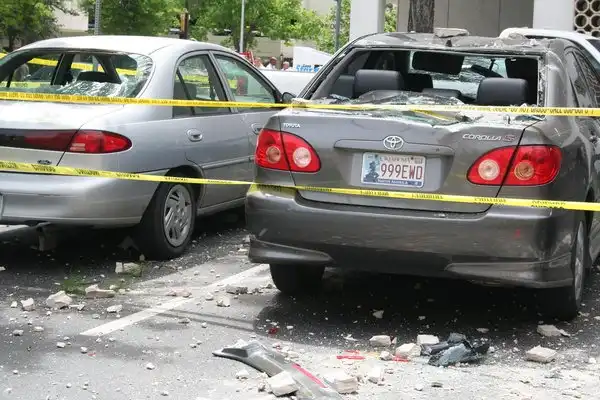 Гараж Bank of America пострадал, мерин С-класса тоже не обрадовался кирпичной стене.