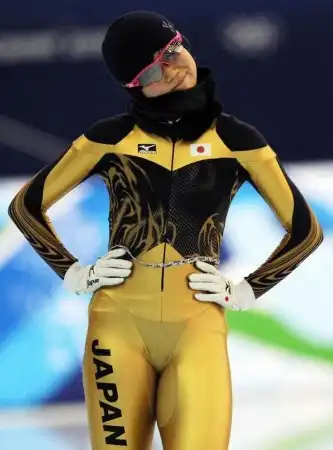 Михо Такаги (Япония) Олимпиада 2010 ВанкуверДело в том, что 15-летняя спортсменка японской олимпийской сборной, Михо Такаги (Miho Takagi) появилась на тренировке в полупрозрачном золотистом костюме, сквозь который очень хорошо были видны стринги девушки.