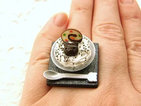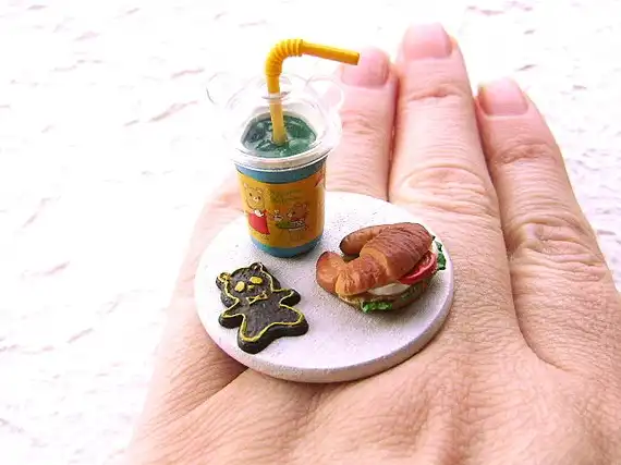 В принципе, что является основной музой мастерицы, видно невооруженным глазом. Еда во всех ее проявлениях и разновидностях, от аппетитных булочек и пирожных до суши, кофе и какао.И хотелось бы слопать все то, что девушка искусно создает из полимерной глины, раскрашивая акриловыми красками и украшая крохотными бусинками. Но, слава Всевышнему, это абсолютно несъедобные вкусности, а значит победа над чревоугодием, облегчение совести и - кошелька. Ведь при виде всех этих миниатюрных красивостей глаза разбегаются, - хочется и одно, и второе и третье…