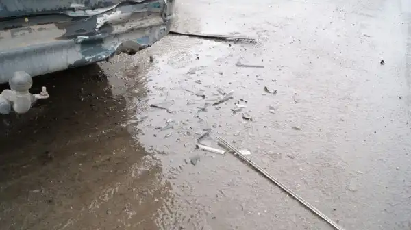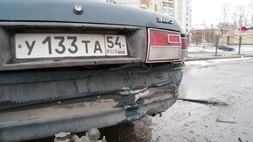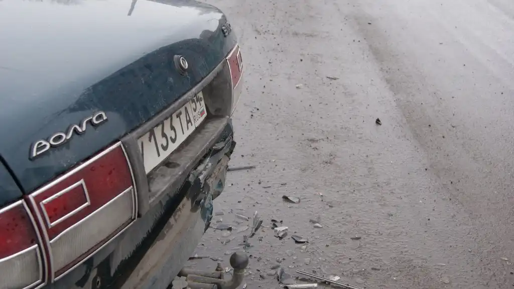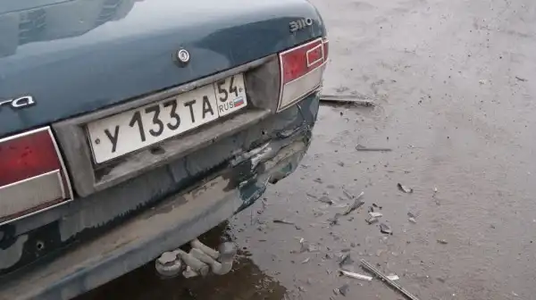 У шестёрки разбилась защита фар, отлетела мухобойка, молдинг, замялось крыло и передок.