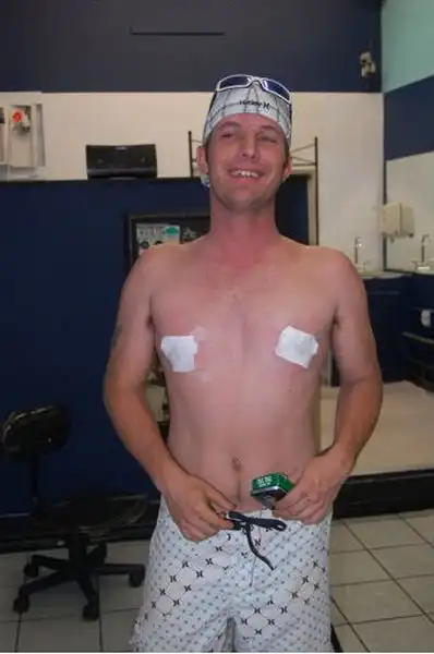 Обычно размер и форма сосков, равно как и всей груди, заботит девушек. Но в данном случае природа наградила мужика малюсенькими сосками. Чтобы исправить эту досадную неприятность, он решил нарисовать себе соски побольше.