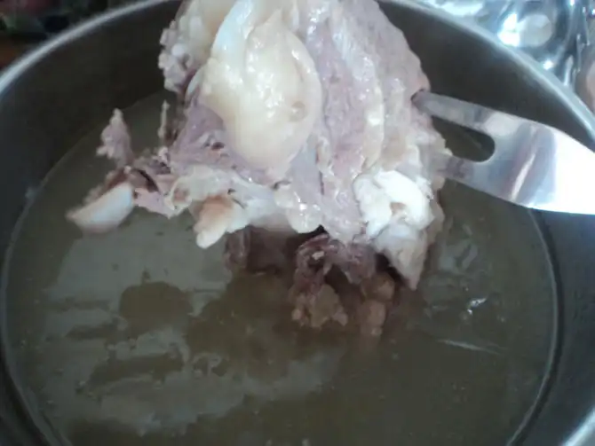 В пятилитровой кастрюле отвариваем говядину. В кипящую воду кладем наше мясо, собираем пенку, накрываем кастрюлей, убавляем огонь и варим часа 2-3. Я взяла телятину, хватила и полутора часов. Хорошо бы, если в кастрюле у нас осталось 3,5 литра.