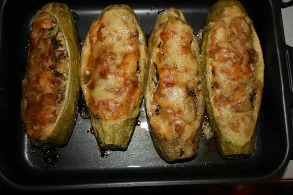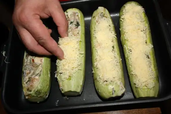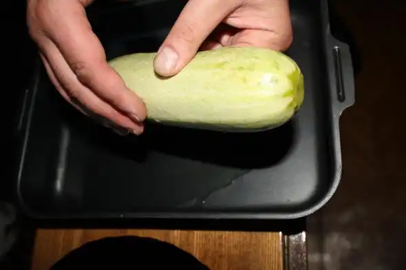Готовим противень, натираем наши кабачки маслом, включаем духовку...
