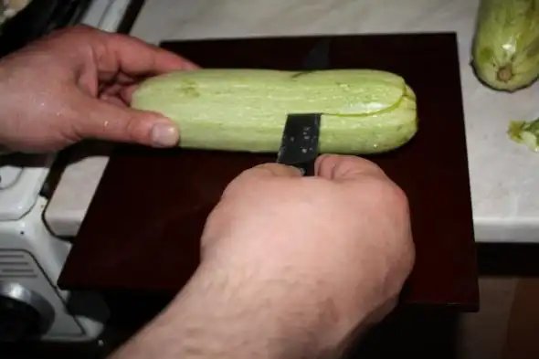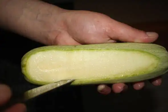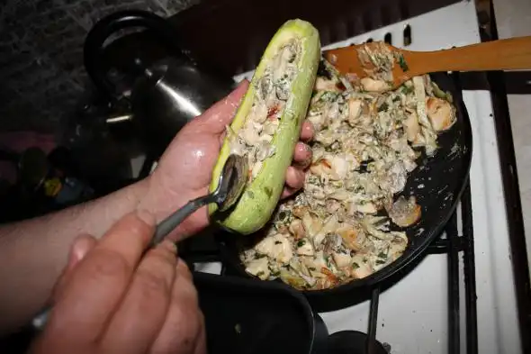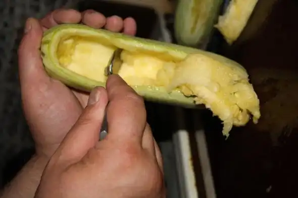 Вырезаем ножом серединку, лишнюю мякоть выскребаем чайной ложкой....