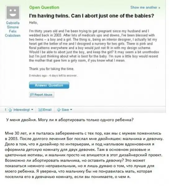 У меня двойня. Могу ли я абортировать одного ребенка?