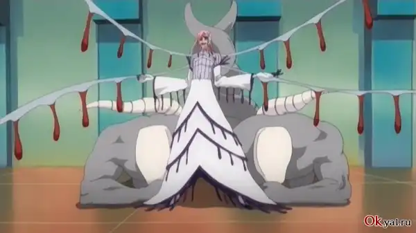 Тиа Харрибэл повержена Айзеном Соуске, а ее фрасьон и химера капитаном первого отряда Ямамото Генрюсем.