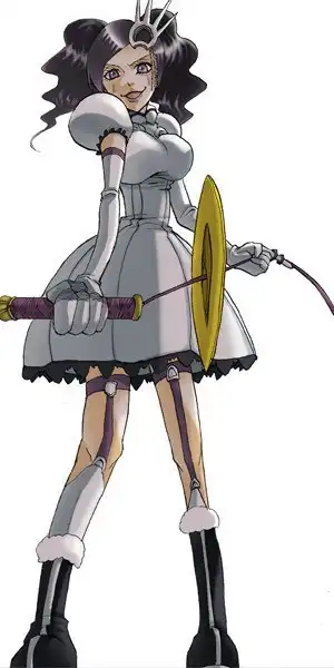Представляет собой два полумесяца на тонкой длинной рукояти, от которой отходит цепь, - в то время, когда Нноитора был восьмым – полумесяц был один.