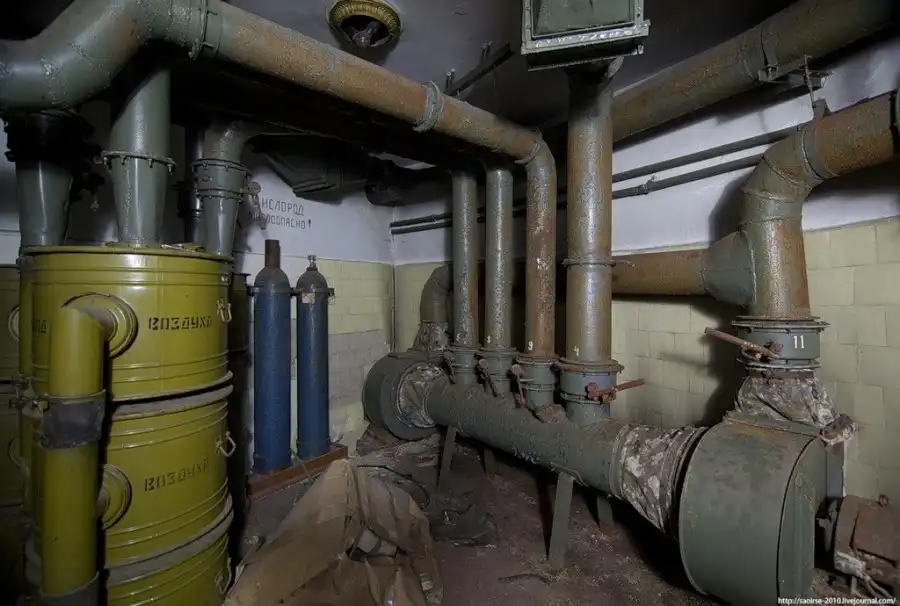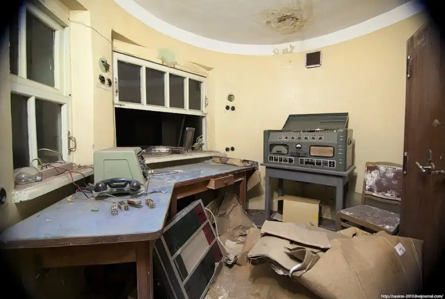 Штаб имеет типовую круглую форму, по центру располагается комната командования, а вокруг нее различные помещения. С учетом сколько лет он стоит заброшенным, его можно назвать хорошо сохранившимся.
