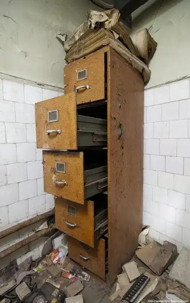 Шкаф, в нем еще сохранились старые газеты.