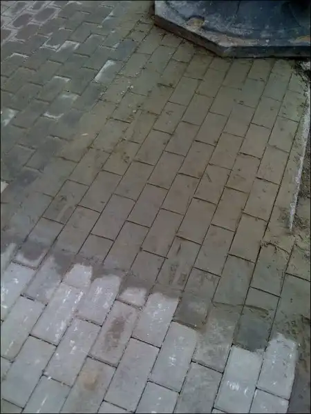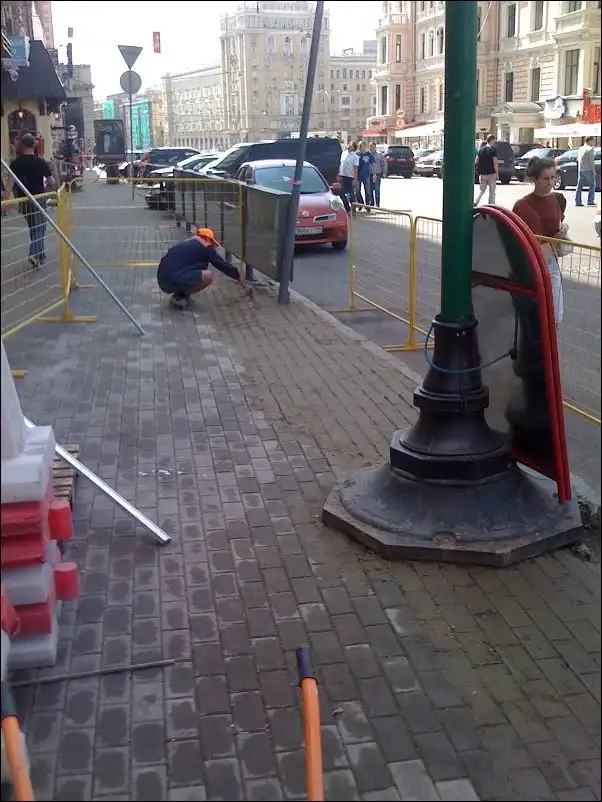 Плиткомания в Москве достигла такого размаха, что стала принимать самые причудливые формы. Иногда таджики вместо плитки заливают осовободившееся после уничтожения асфальта место бетоном и просто мастерком рисуют на нем "плитку".