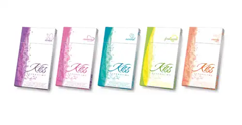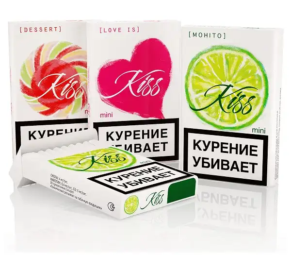 Упаковка сигарет Kiss, раньше отличавшаяся более сдержанным дизайном, также стала куда ярче и веселей.