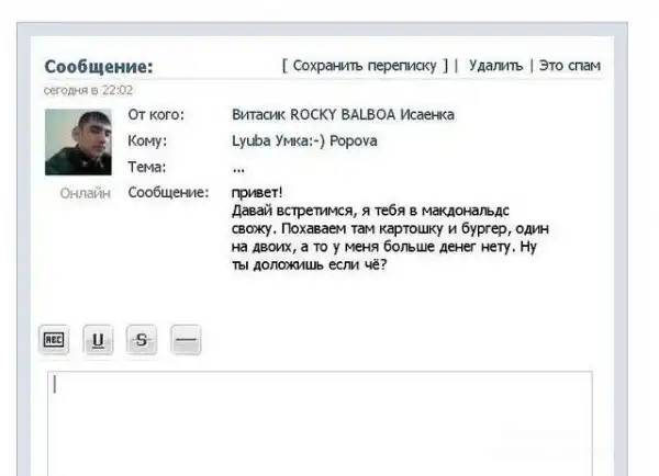 Ну и теперь когда вы вдоволь насмотрелись на Любашу, прошу ознакомиться с её перепиской с настоящими горячими парнями.