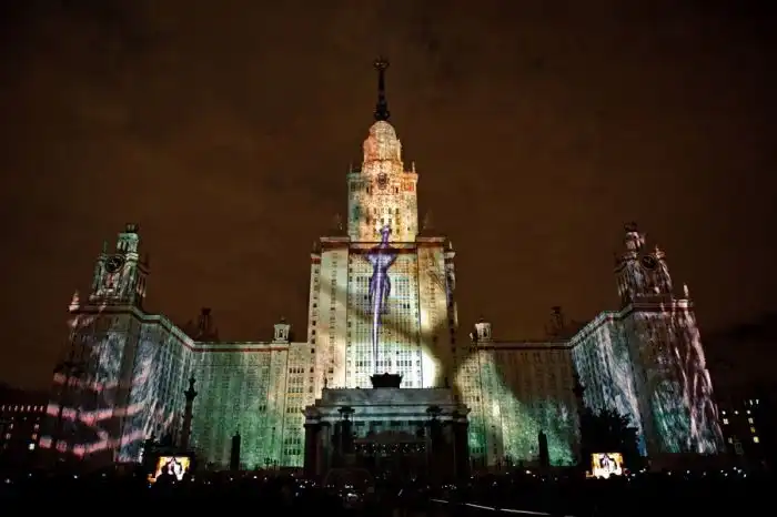Фасад главного здания МГУ на Воробьевых горах превратится в огромный экран для демонстрации уникального светомузыкального представления в постановке Дэвида Аткинса.