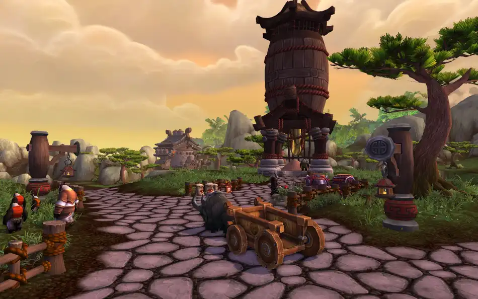В Mists of Pandaria мы решили прийти к тому, чтобы создать как можно больше повторяющихся заданий для персонажей высокого уровня и разжечь интерес во всех игроках, включая тех, кто активно ходит по подземельям и в рейды. Новые задания будут более разнообразными и менее линейными; игроки смогут выбирать из многочисленных групп заданий. Только не рассчитывайте на то, что вам удастся полетать, пока не достигнете максимального уровня! Кроме того, сейчас разработчики уделяют пристальное внимание фракциям и репутации, которую можно будет с ними зарабатывать в процессе игры. Возможно, для этого не нужно будет обзаводиться гербовой накидкой. Также в Пандарии игрокам будут предложены задания для одиночного выполнения, схожие с теми, которые они уже прошли на Огненной Передовой.