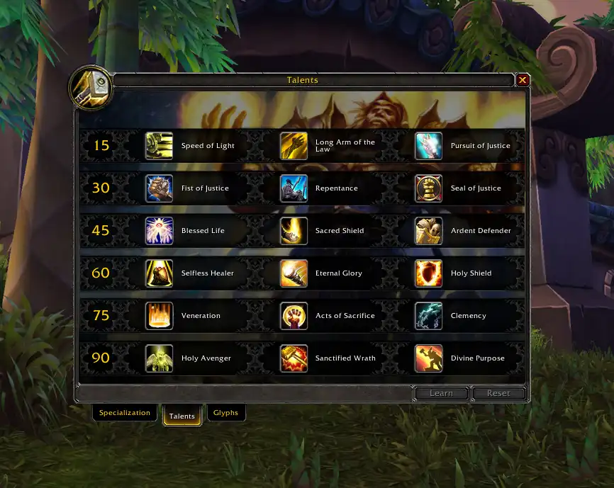 Пример: паладин со специализацией «защита»