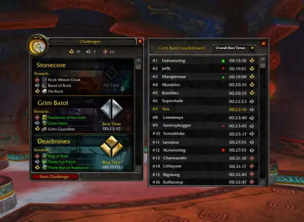 Теперь проходить героические подземелья с группами, сформированными при помощи системы поиска подземелий, станет намного проще. Но мы не хотим, чтобы игроки, которые не ищут легких путей, чувствовали себя покинутыми — именно для них мы и создали режим испытания в подземельях. Здесь им предстоит достичь определенной цели (пройти подземелье за N минут). Тех, кому это удастся, ждут награды в виде бронзовых, серебряных и золотых медалей. Но не только это ждет искателей приключений: их броня будет унифицирована, чтобы увеличить сложность прохождения. Победителю достанутся трофеи и уникальные не увеличивающие характеристики доспехи, которые можно будет использовать для трансмогрификации. Теперь ваш персонаж будет еще сильнее выделяться из толпы!