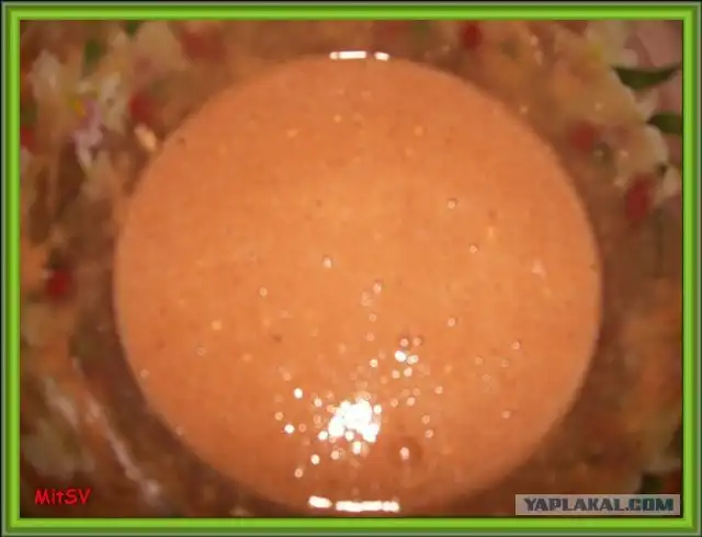 Туда же в сметану добавляем зелень и хорошо перемешиваем, а лучше в блэндере размешать в течение 5-10 секунд. Всё, соус готов. Убираем его в холодильник минут на 20.