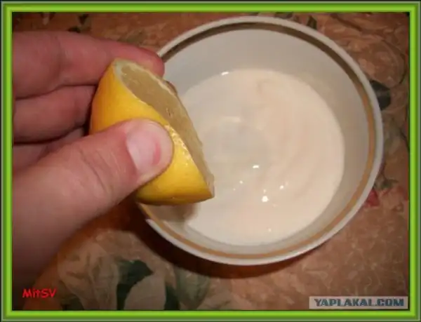 Отделяем желтки от белков (белки пока в сторону, а желтки в чашку). Выдавливаем к желткам немного сока лимона, перемешиваем.