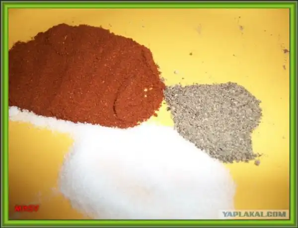 2. добавляем соли, перца черного немного и молотой паприки. Всё сугубо индивидуально, на свой вкус. Кто-то любит что бы поострее было, кто-то нет.