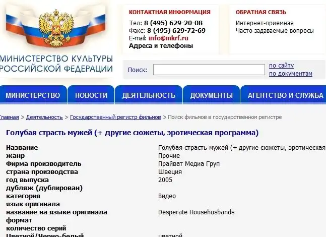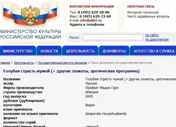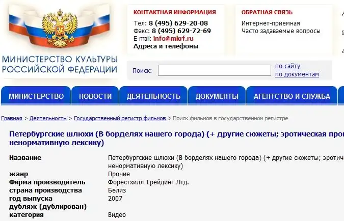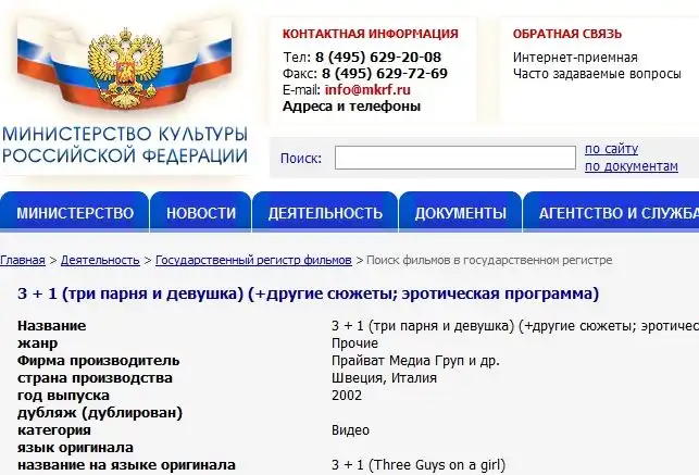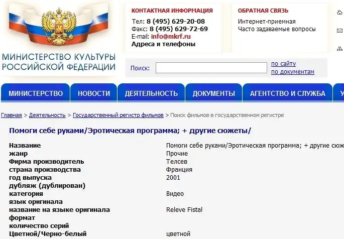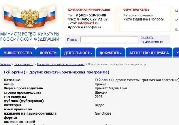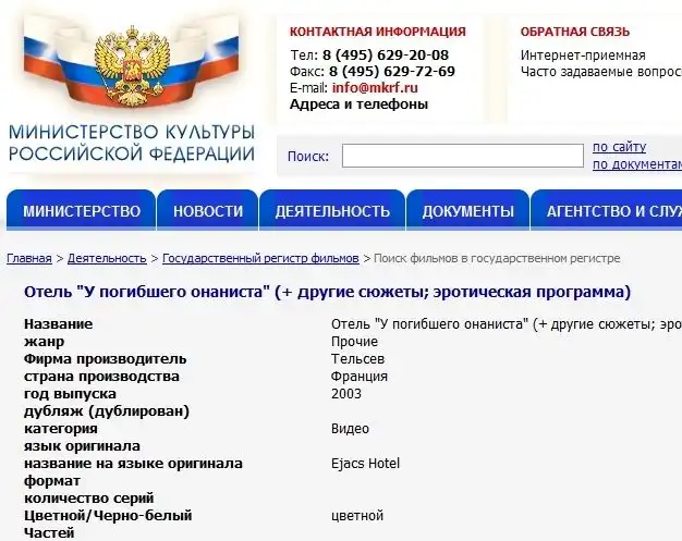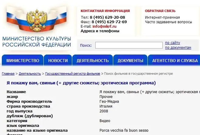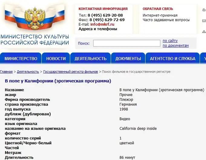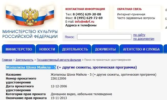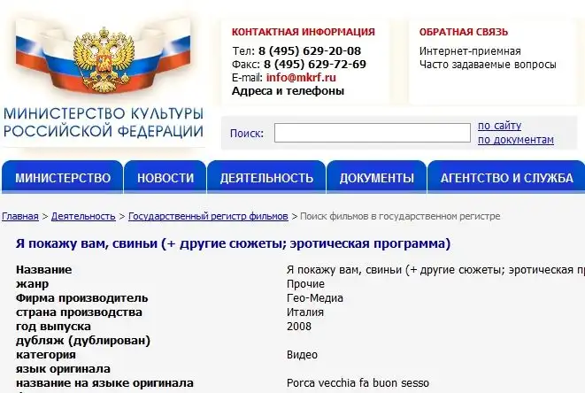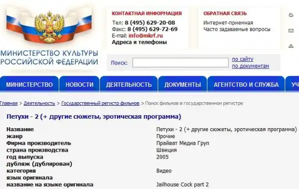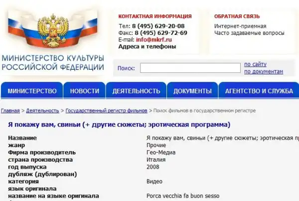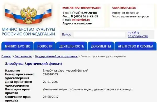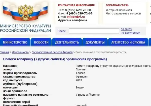 Перед вами фильмы, которым Министерство Культуры Российской Федерации выдало прокатное удостоверение. Если вы вдруг думали, что в России порнография не совсем легальна, то вы ошибаетесь. На сайте Министерства Культуры Российской Федерации собраны все кастинги Пьера Вудмана и фильмы Рокко Сиффреди.