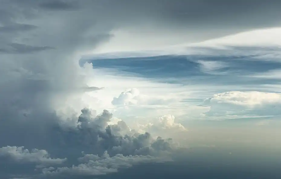 Немецкий фотограф Рюдигер Немзов (Rudiger Nehmzow) организовал экстремальную съемку облаков над территорией Бразилии. На высоте порядка 6000 м автор надел кислородную маску, обвязался веревками и прямо из открытой двери самолета запечатлел живописные картины бескрайнего неба.