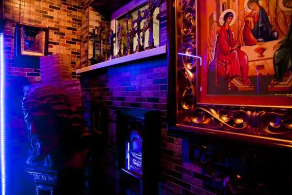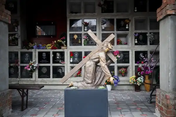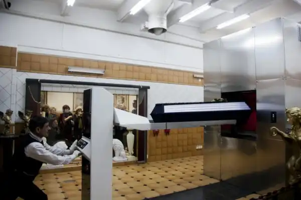 На заднем дворе находится аллея с боксами для хранения емкостей с прахом. Бокс можно как угодно оформить и поставить туда что угодно