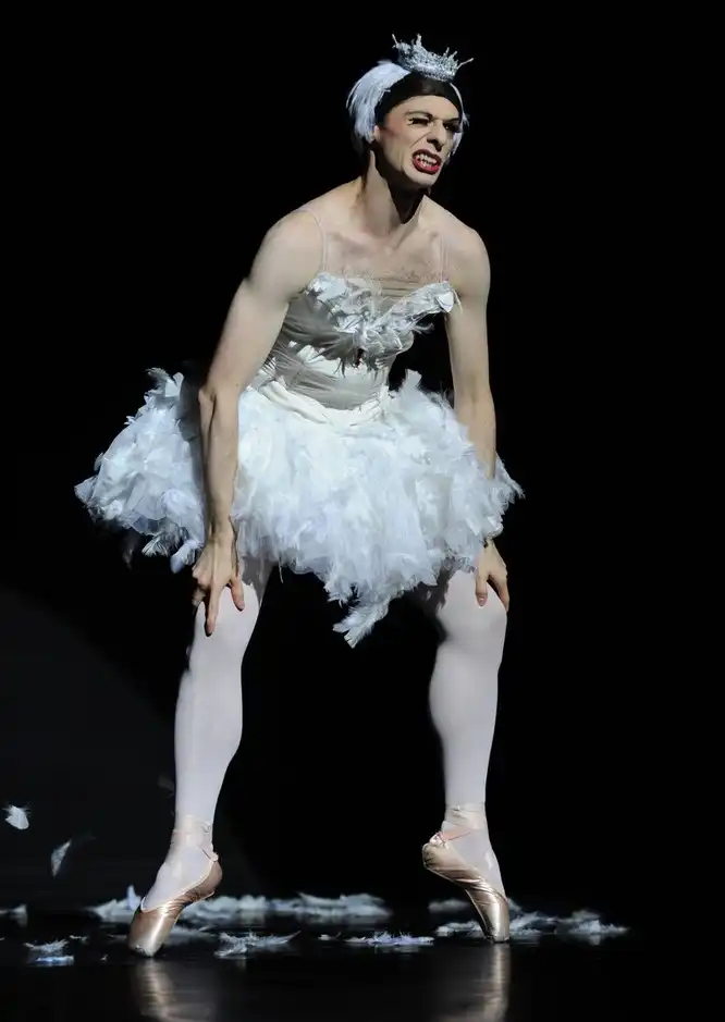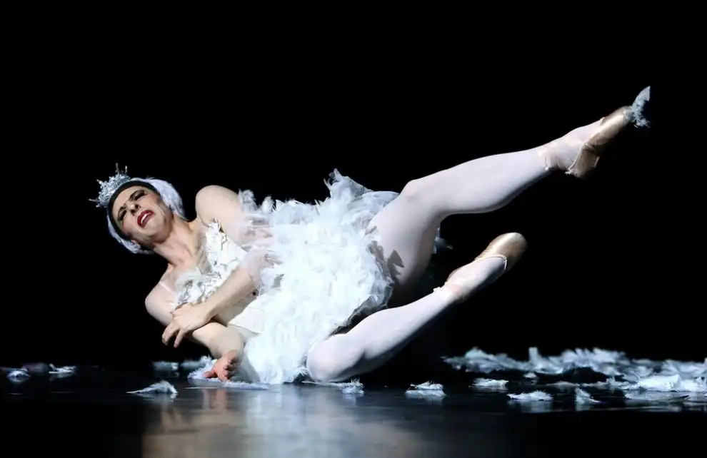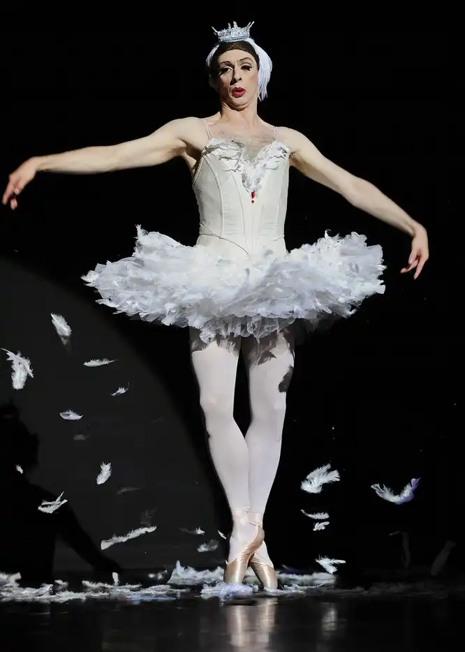 Отсутствие женщин не мешает Трокс ставить настоящие шедевры и пользоваться огромным успехом. Танцоры прекрасно выполняют все сложные женские партии. На фото: прекрасная Одетта, превращенная в лебедя.