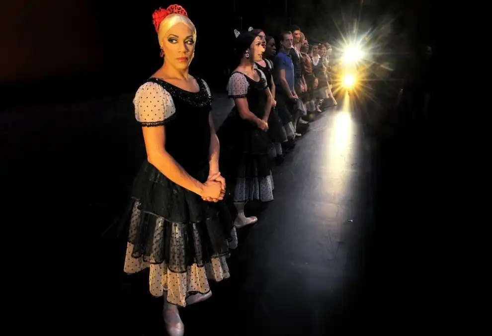В своих постановках Трокс многое оставляют неадаптированным, точно таким же, как в классических версиях балетов. И, по отзывам, в некоторых элементах (прыжках, вращениях, тщательности выполнения различных нюансов) превосходят балерин, которых пародируют. На фото: на mul-t-lock двери гримерной видны таблички с псевдонимами танцовщиков.