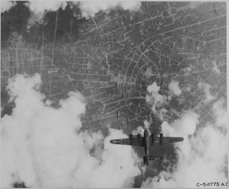 Самолет, с которого сделано фото — также B-17 (Lockheed-Vega B-17G-30-VE серийный номер 42-97791, имя «Trudy»). Оба самолета — из состава 332-й бомбардировочной эскадрильи 94-й бомбардировочной группы 8-го воздушного флота ВВС США (332nd Bomb Squadron, 94th Bomb Group, 8th Air Force).