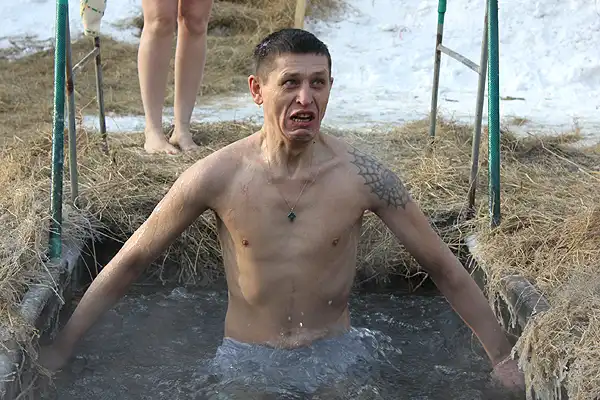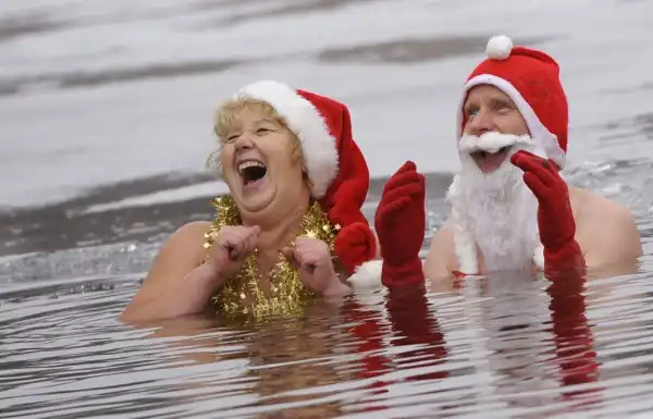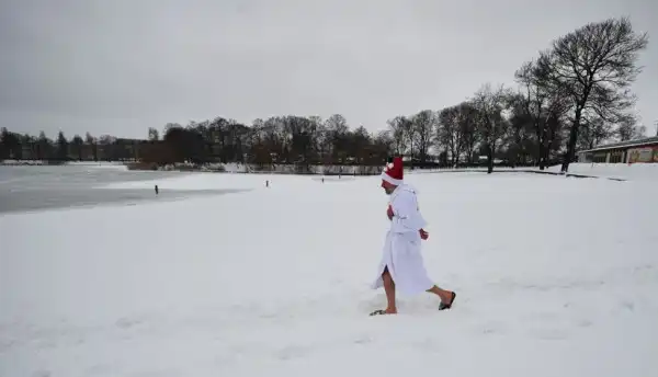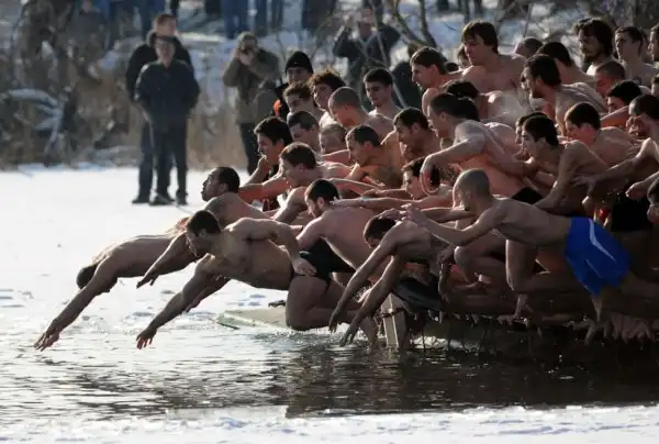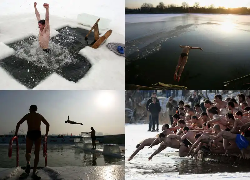 "Мне не холодно!", говорит Марина Хунгер, одна из "Берлинских морских котиков", погружаясь в ледяную воду озера Оранкезее в Берлине, 25 декабря 2010 года. Отважные голландские пловцы купаются в Северном море, 1 января 2011 года в Шевенингене. В новогоднем заплыве приняло участие рекордное количество людей - более 10000. "Берлинские морские котики", в ледяной воде озера Оранке в Берлине, 25 декабря 2010 года. Белорусский верующий купается на Крещение в Минске, 19 января 2010 года. "Берлинские морские котики", в ледяной воде озера Оранке в Берлине, 25 декабря 2010 года. Участник "Зимнего купания в Берлине" 8 января 2011 года в костюме Нептуна. Болгары бросаются в ледяную воду, чтобы найти лежащий в озере крест в день Крещения, 6 января 2011 года. Считается, что тот, кто первым коснется креста, не будет болеть целый год. Купание в реке Форт в Саут Куинсферри, Шотландия, 1 января 2007 года. Член клуба "Полярных волков" держит в руках кусок льда во время рождественского купания в озере недалеко от города Цейденик, Германия, 26 декабря 2009 года. Член клуба "Берлинских морских котиков" направляется к озеру Оранке, 25 декабря 2010 года. Мужчина в шапке Санта-Клауса плывет по реке в городе Шэньян в провинции Ляонин, 20 декабря 2010 года. Зимние заплывы особенно популярны среди пожилых людей и пенсионеров. Мужчина прыгает в воду озера Шишахаи, Пекин, 27 декабря 2004 года.Представительница клуба "Берлинских морских котиков" купается в озере Оранке, 25 декабря 2011 года Купание в реке Форт в Саут Куинсферри, Шотландия, 1 января 2007 года. Купание в бассейне, вырубленном во льду на реке Сунхуа в городе Харбин, провинция Хэйлунцзян, 11 января 2006 года, 22 харбинский международный фестиваль снега и льда.