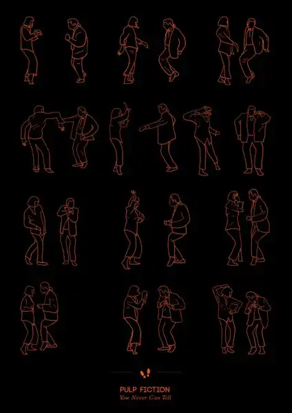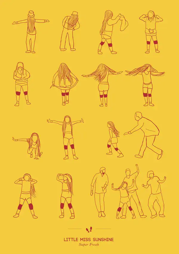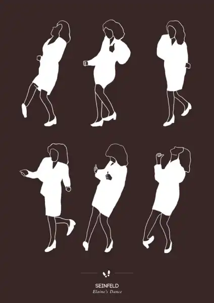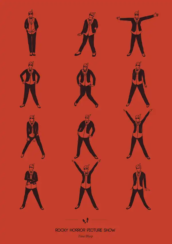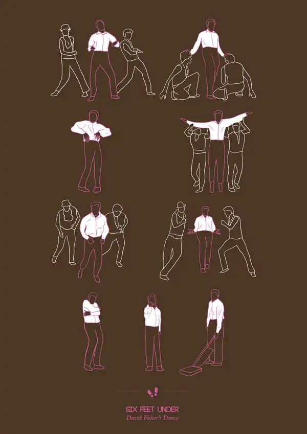 Найге выбрал самые остроумные танцы, которые известны по кинофильмам и телесериалам и нарисовал инструкции, как их танцевать шаг-за-шагом поза-за-позой. Получилась серия забавных постеров.