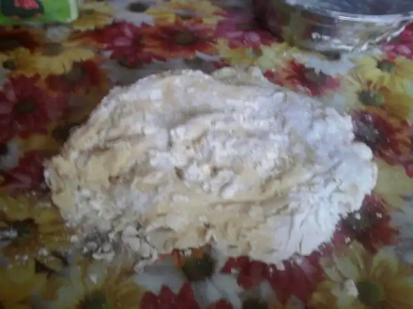 Когда тесто перестает явно течь - выкладываем его на стол (или большую разделочную доску) и вымешиваем. По консистенции тесто должно напоминать очень мягкий пластилин и не прилипать к рукам, если тесто замешать слишком туго, то раскатывать его будет очень тяжело. Формируем "колобок" из теста и убираем его в полиэтиленовый пакет, ставим в прохладное, но не холодное место на полчаса или час. В холодильнике, например, тесто станет твердым и не пластичным, придется долго ждать, когда оно согреется.