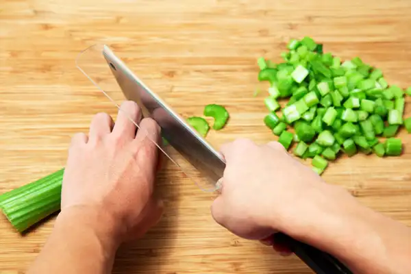 Пластиковая насадка для ножа, которая с помощью магнита крепиться к лезвию. Благодаря ей можно легко переносить нарезанный продукт в сторону, что ускоряет процесс готовки.