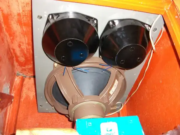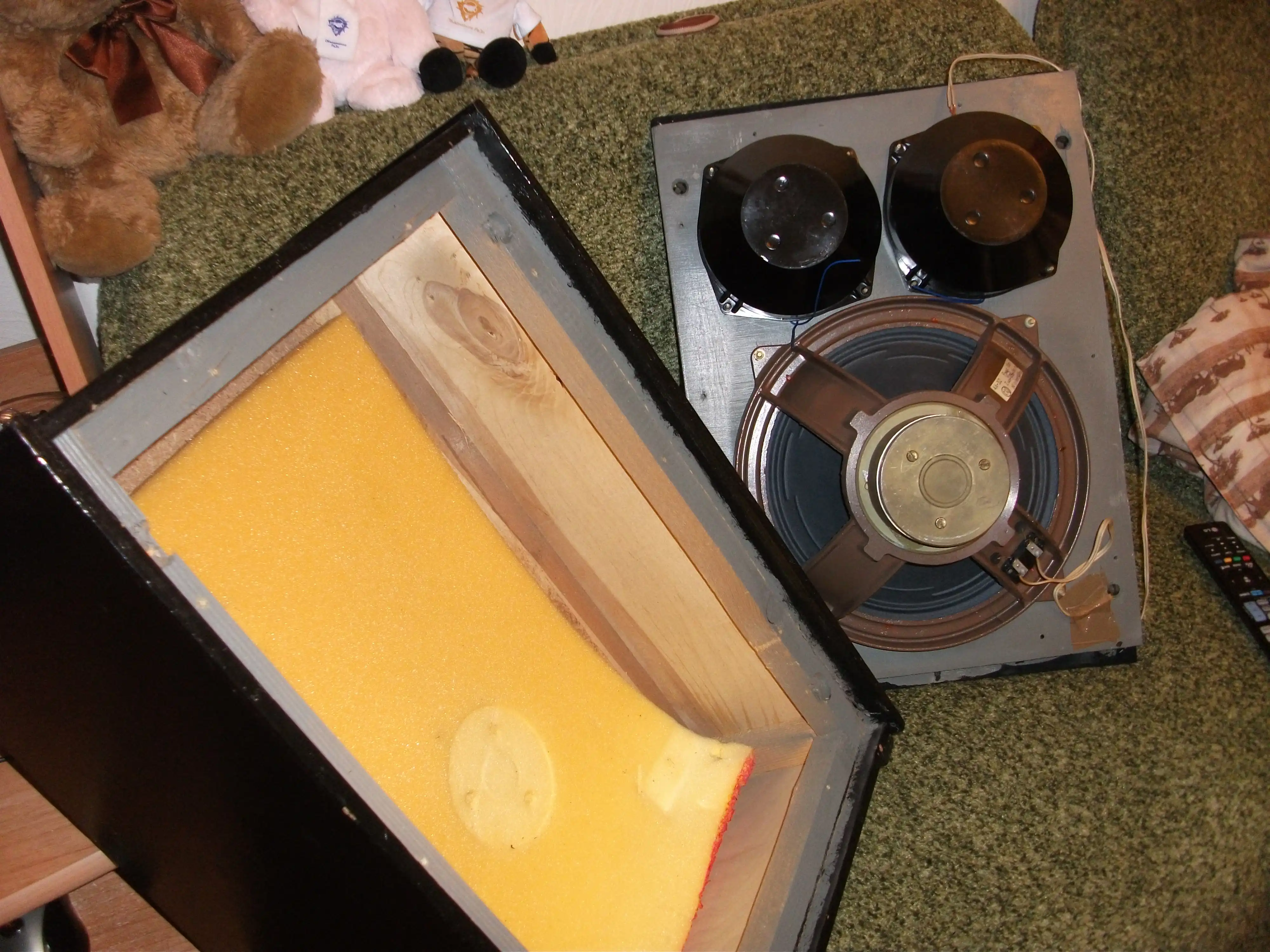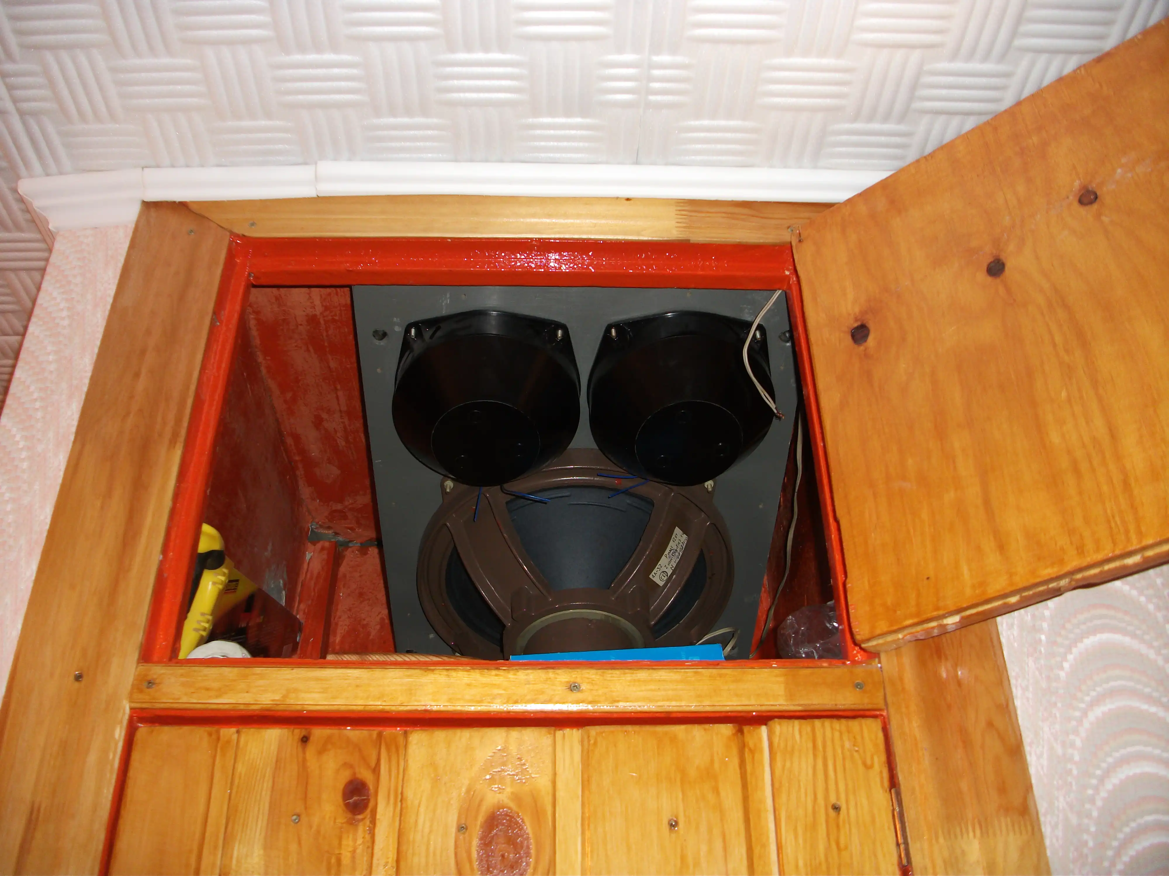 Разобрал одну из своих совдеповских, мощных колонок и установил ее в прихожке на антресоли.