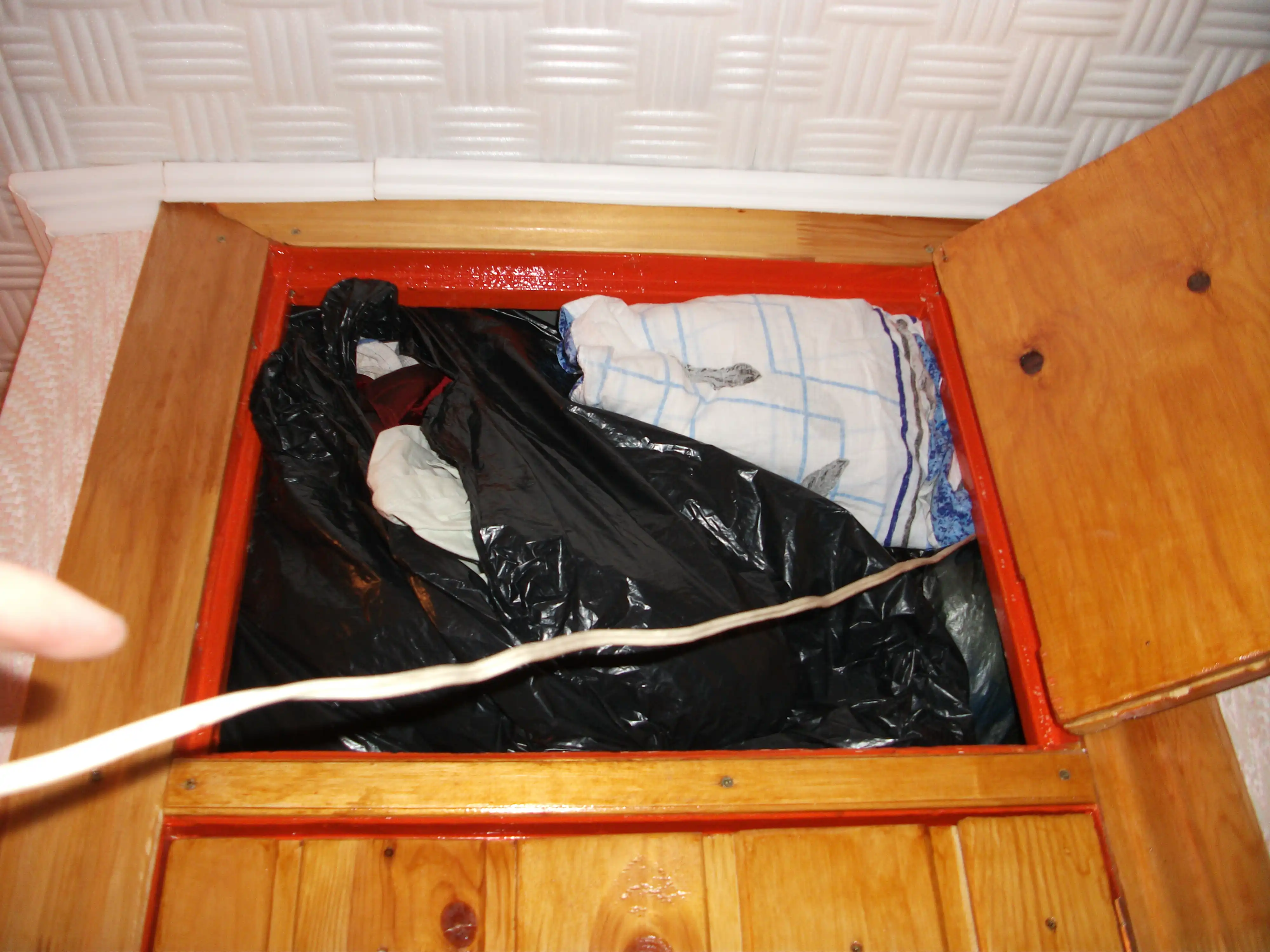 Т.к. нас разграничивает только перекрытие. Вокруг колонки все заложил тряпками и плотно закрыл дверь.