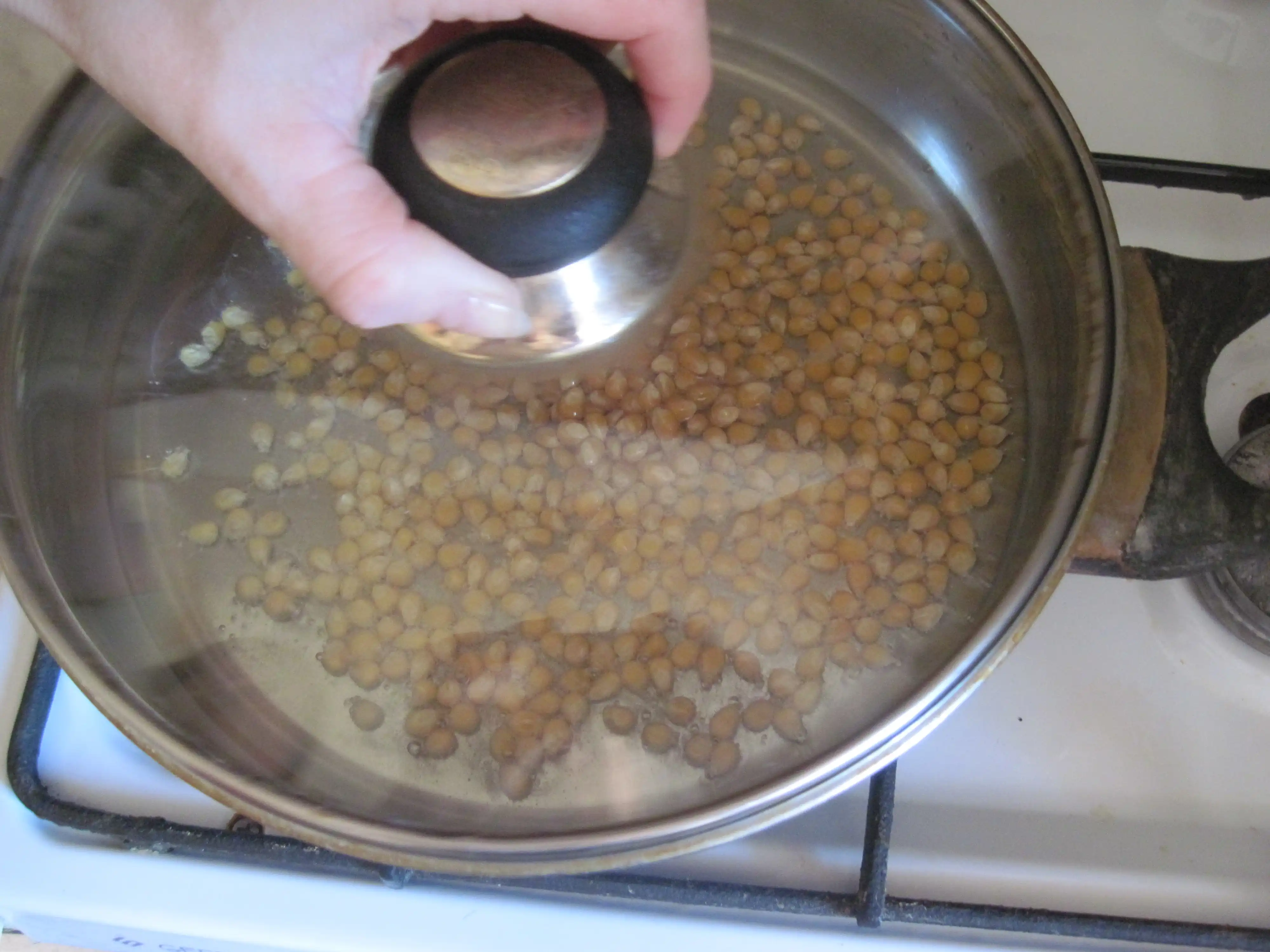 Закройте крышкой и готовьте до прекращения хлопков.