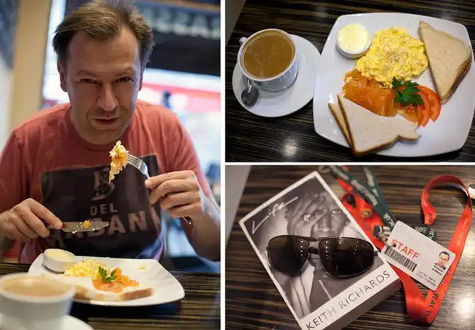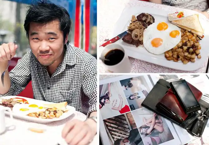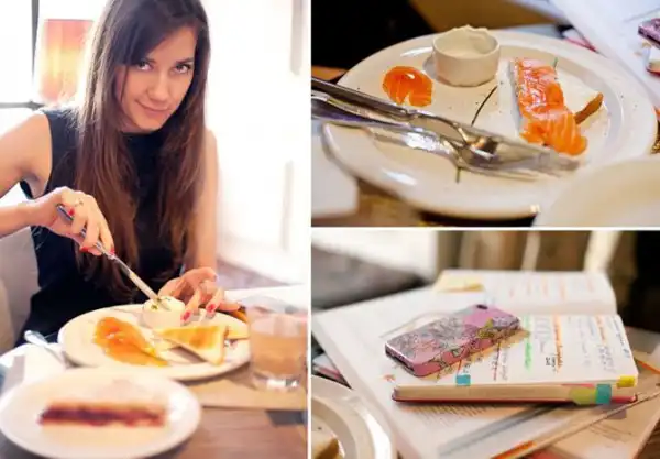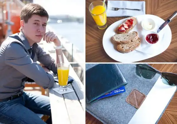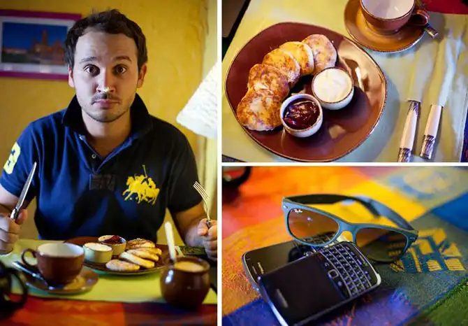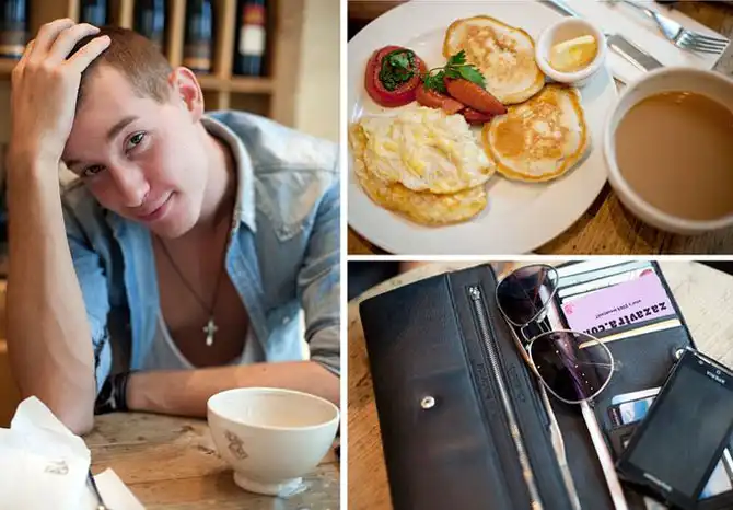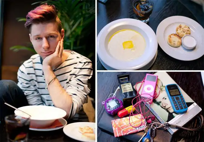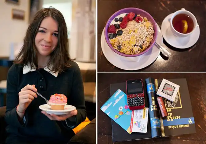 Проект «За завтраком» представляет собой обширную подборку фотографий людей с их излюбленными завтраками, а также содержимым их карманов, сумок и бумажников.