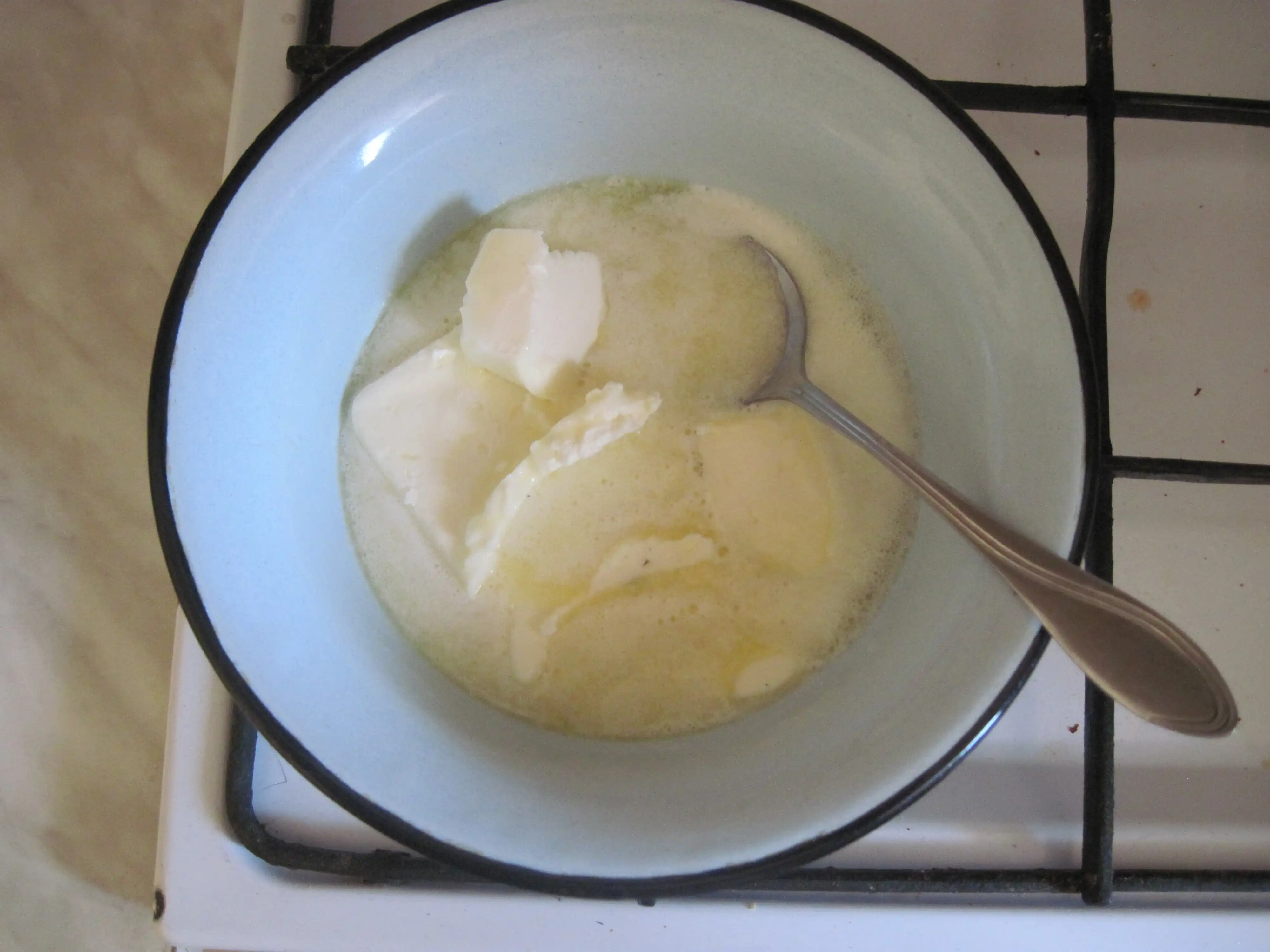 Для начала следует растопить сливочное масло на плите до жидкого состояния.
