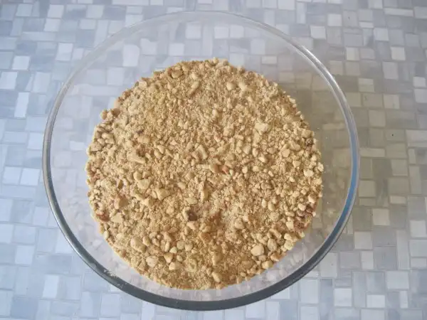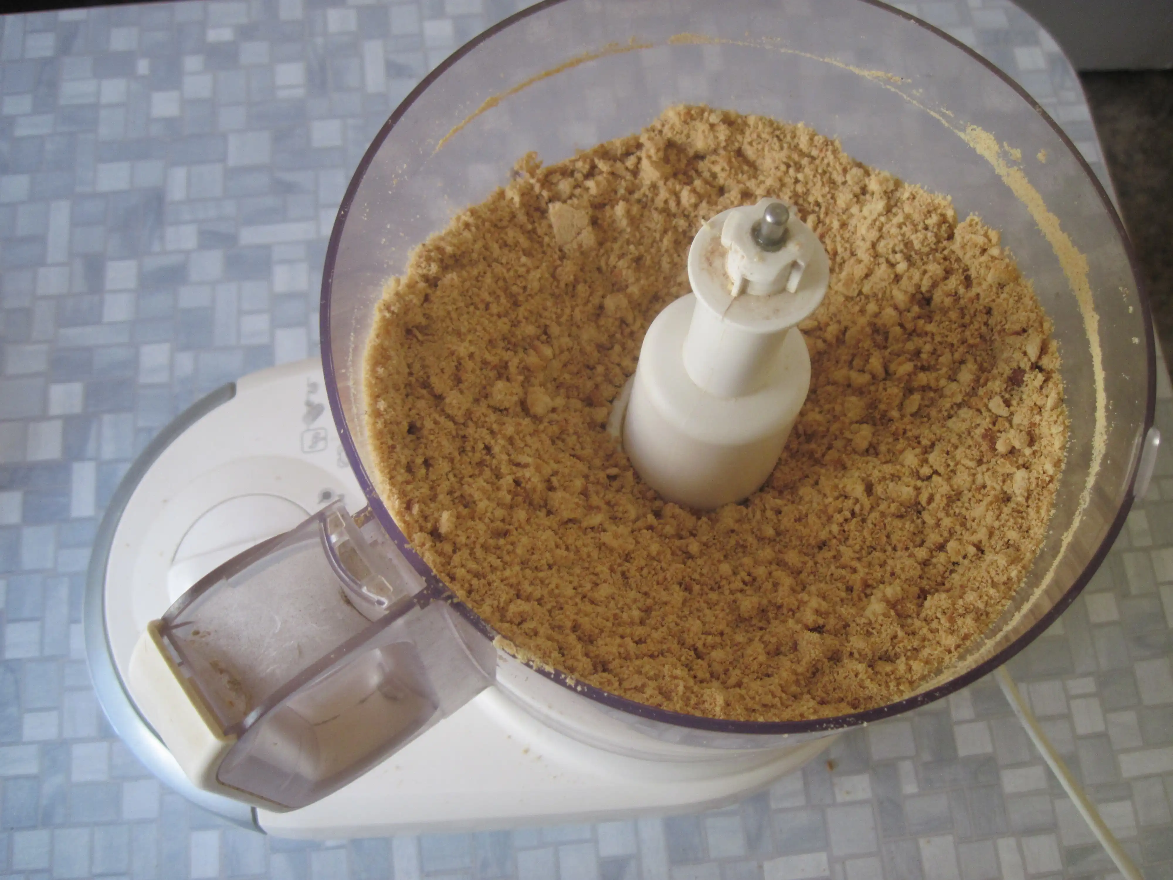 Далее нужно размолоть печенье в миксере, ( в ручную или через мясорубку) до крошкообразного состояния.