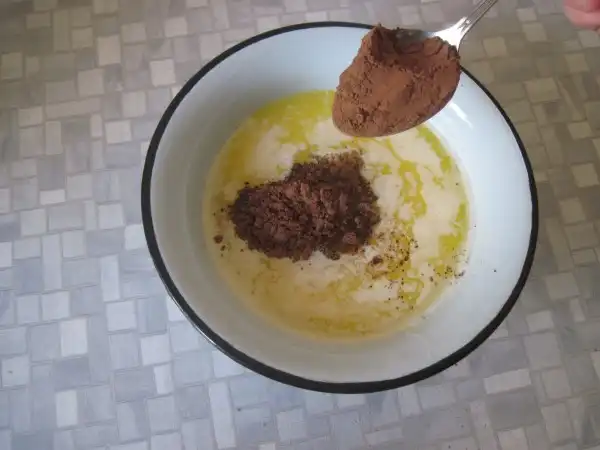 и 2 столовые ложки какао-порошка: размешать до однородной массы.