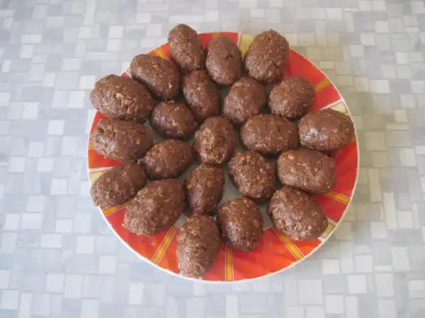 Его же разделить на более маленькие кусочки в форме шариков. Выложить на тарелку…