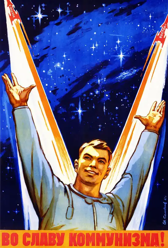 Представляем вашему вниманию подборку замечательных пропагандистских постеров советской космической программы 1958-1963 годов.