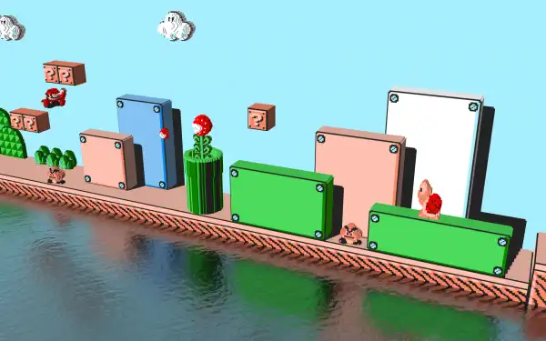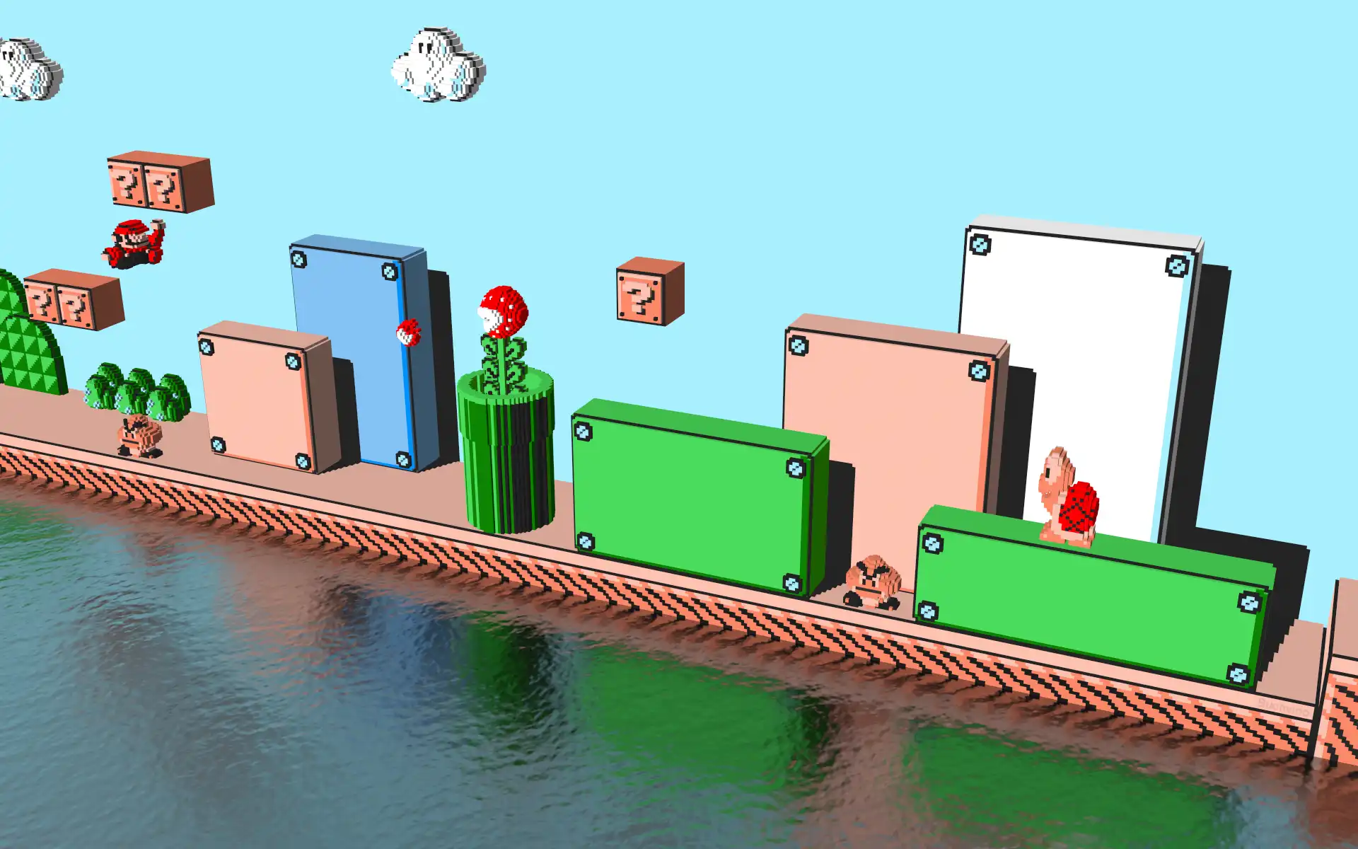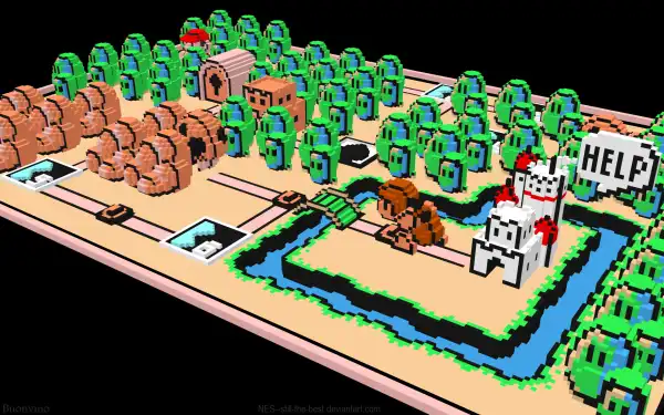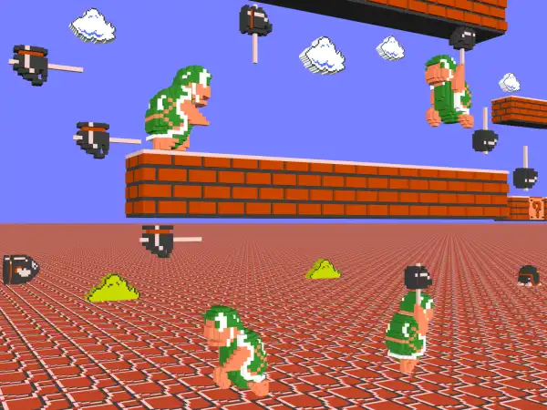 Парень по имени Justin Buonvino конструирует моменты нинтендовских игр в 3D-пространстве, используя программу под названием "Bryce". Выходит весьма интересно и забавно, есть возможность ощутить себя в восьмибитном пространстве, ближе "почувствовать" себя в игровом мире.