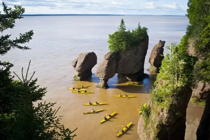 Залив Фанди прославили по всему миру его рекордные приливы и отливы. Он расположен на Атлантическом побережье Северной Америки. У него уникальная форма, благодаря которой, различие в уровнях воды между приливом и отливом может составлять целых 14 метров. Каждый день тут происходит один прилив и один отлив.